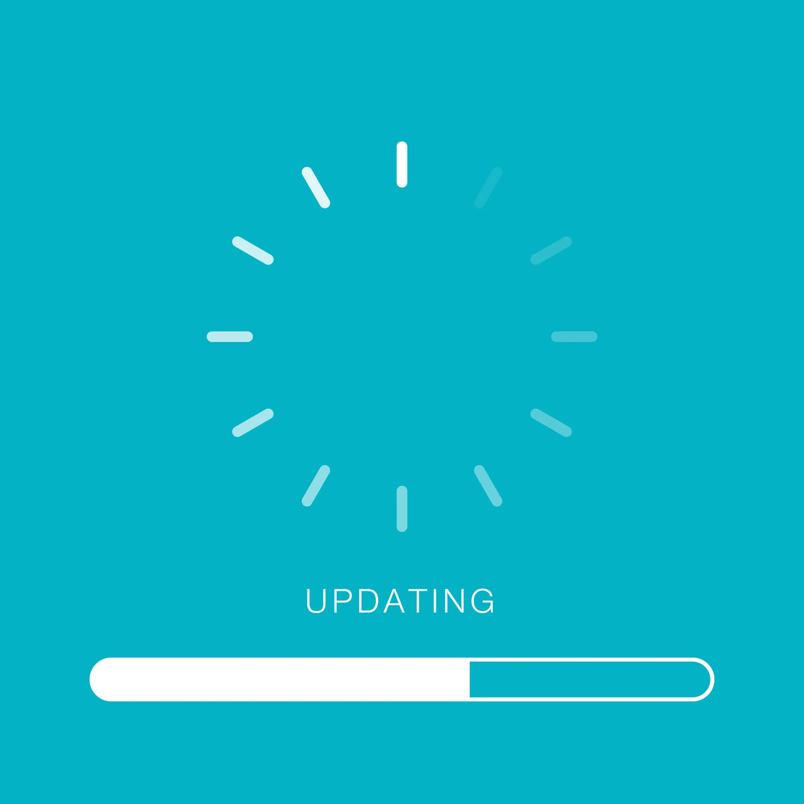 A light blue screen with a circular loading animation above the word UPDATING and a partially filled progress bar indicating a website update is currently in progress